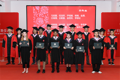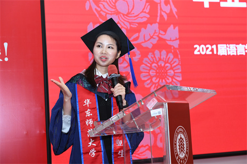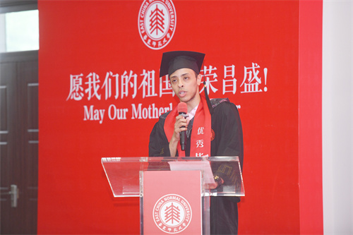 毕业生代表本科生倪浩然(埃及)、硕士研究生覃李坤发言